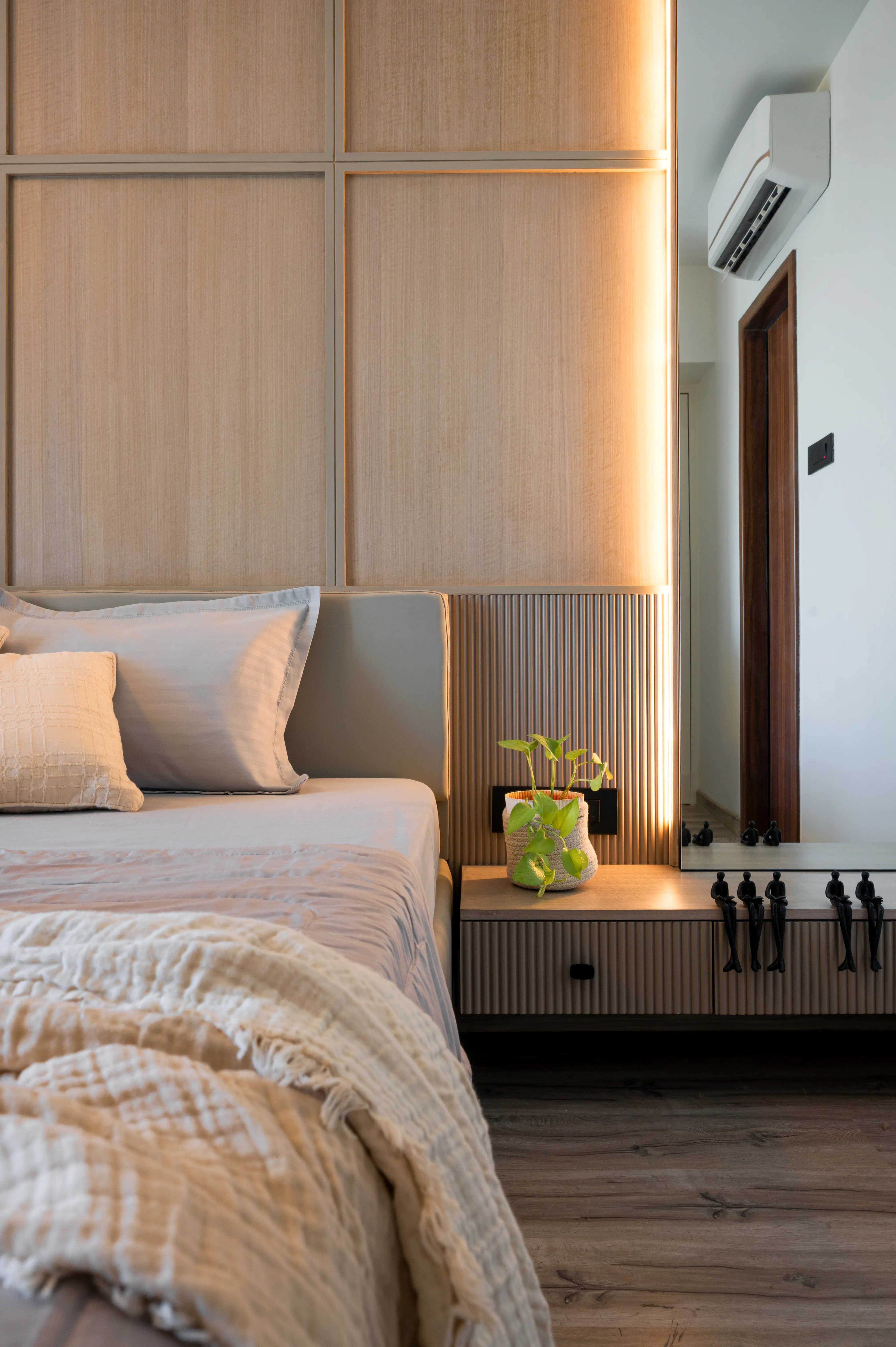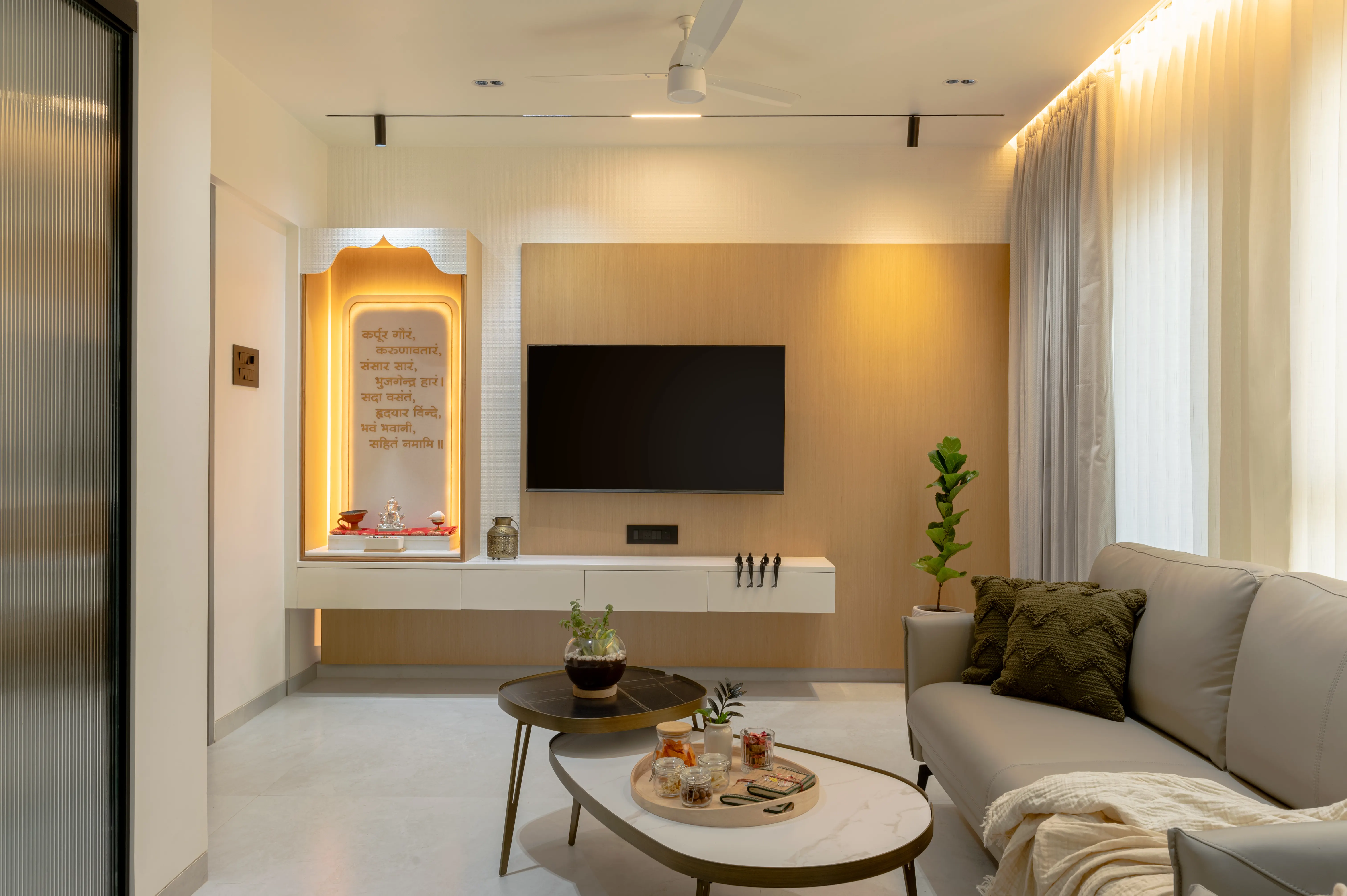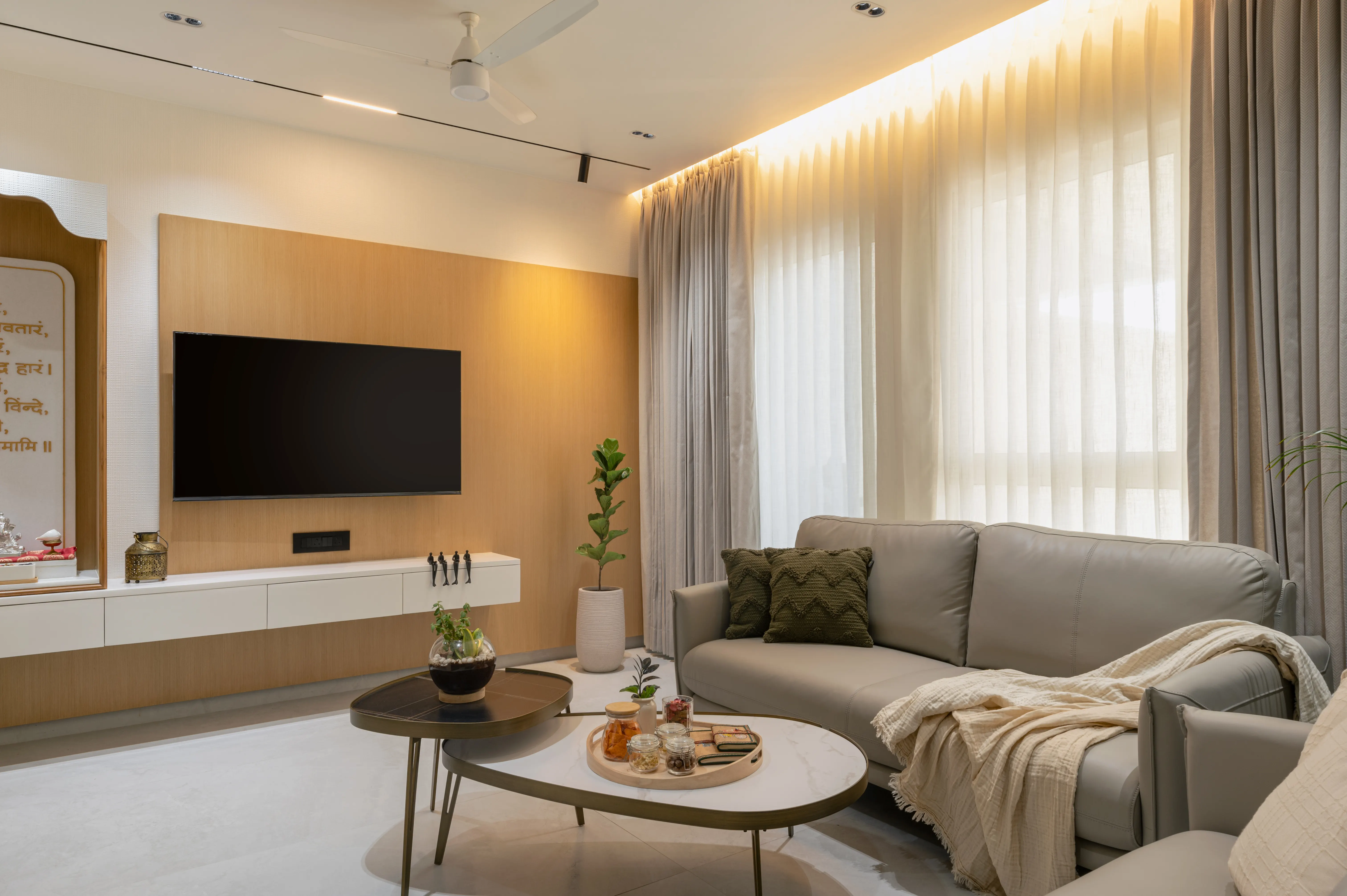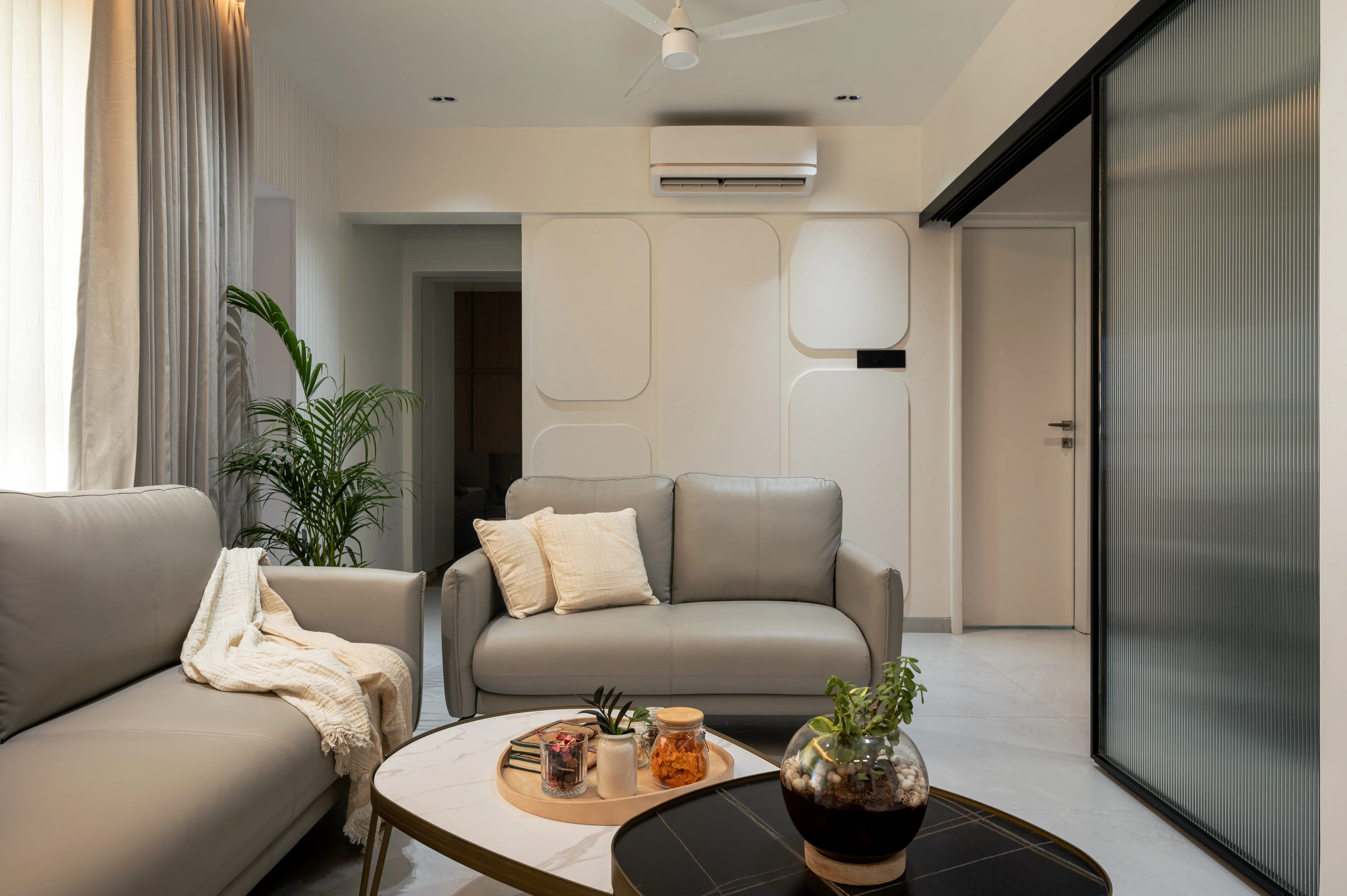 A 2BHK apartment designed and executed end-to-end by Ivory Design Studio, this home reflects a perfect balance of functionality and refined aesthetics. From space planning to bespoke furniture, wardrobes, and kitchen detailing, every element was thoughtfully crafted to create a cohesive and comfortable living environment. The design language combines modern elegance with warm finishes, resulting in a space that feels both inviting and timeless.