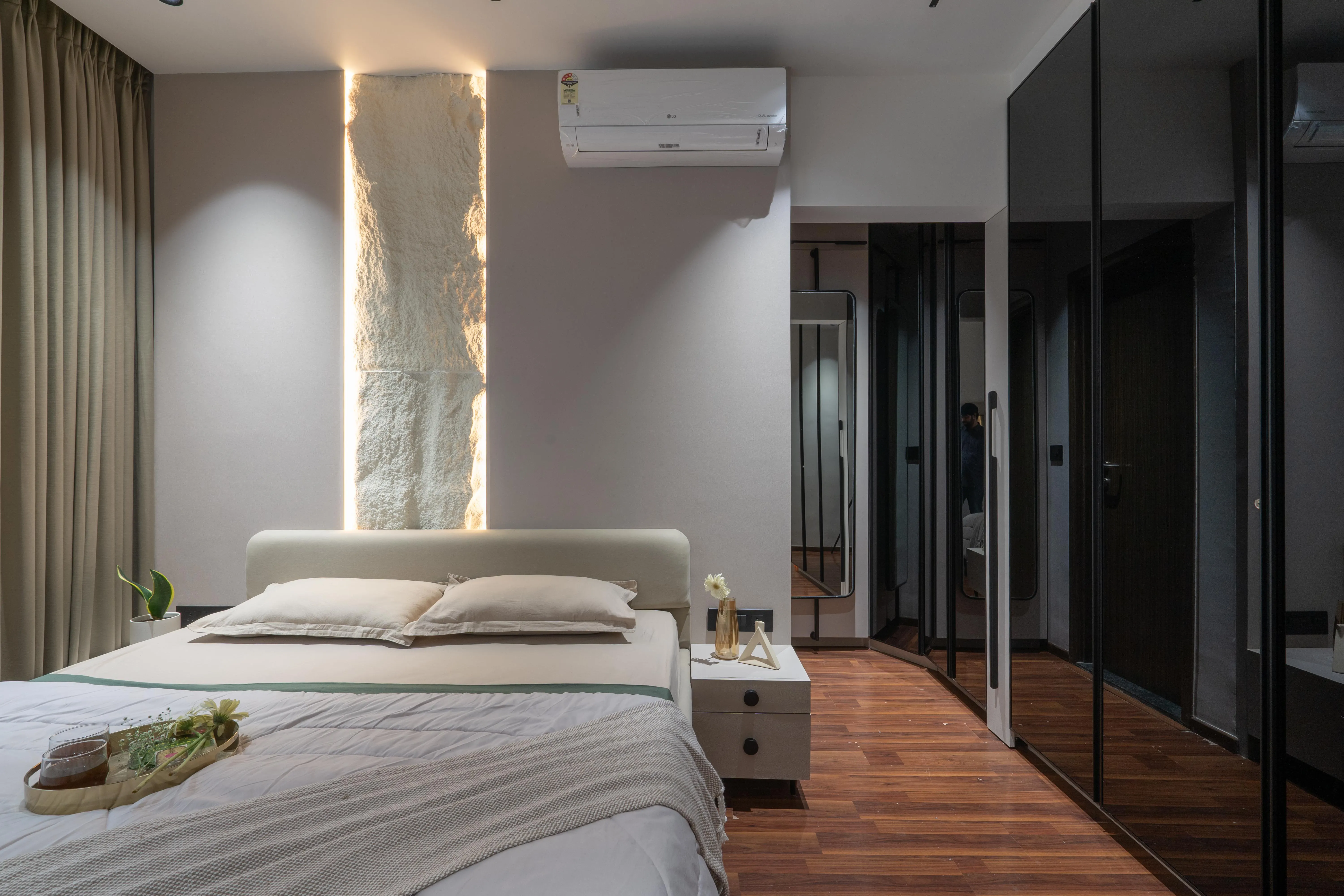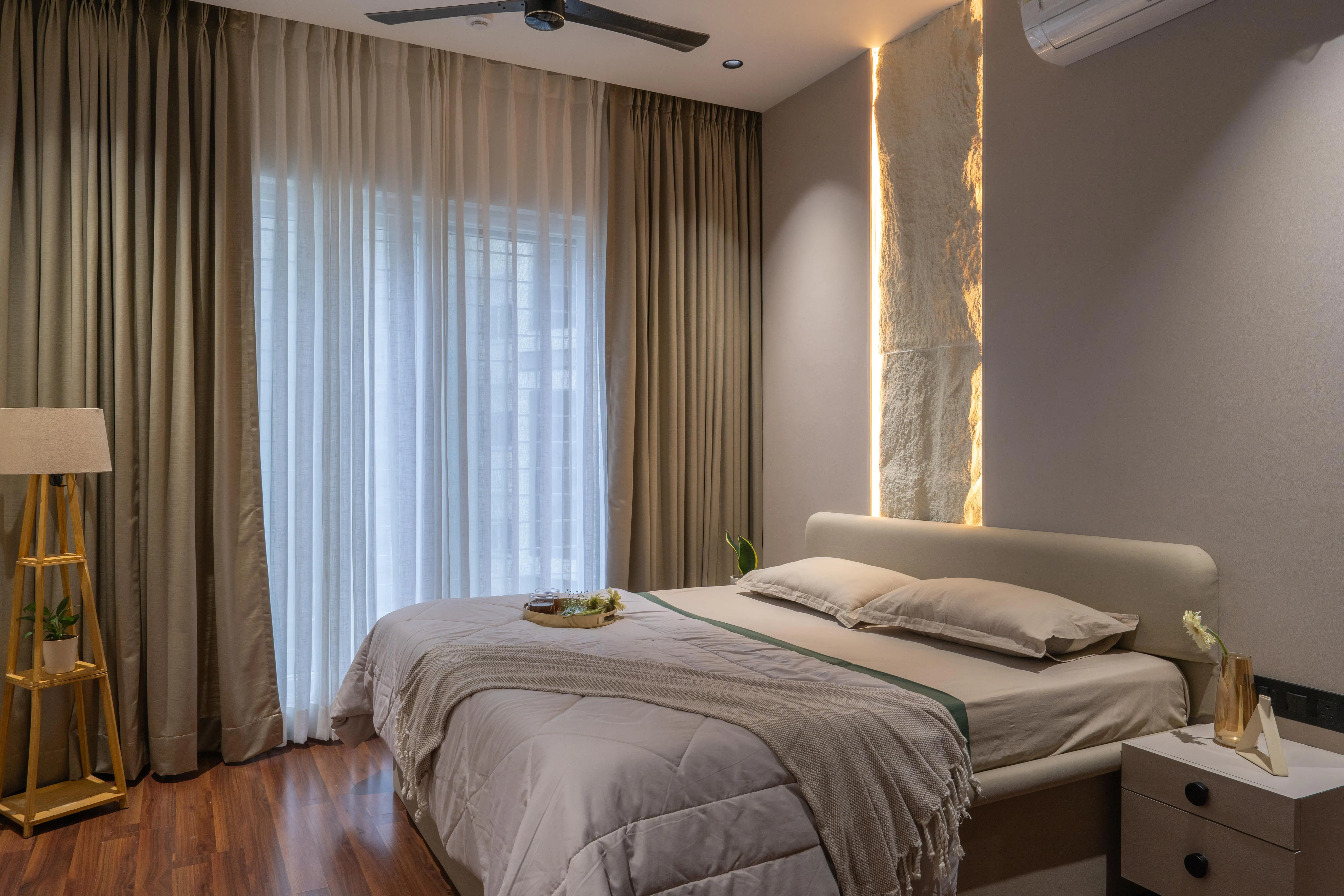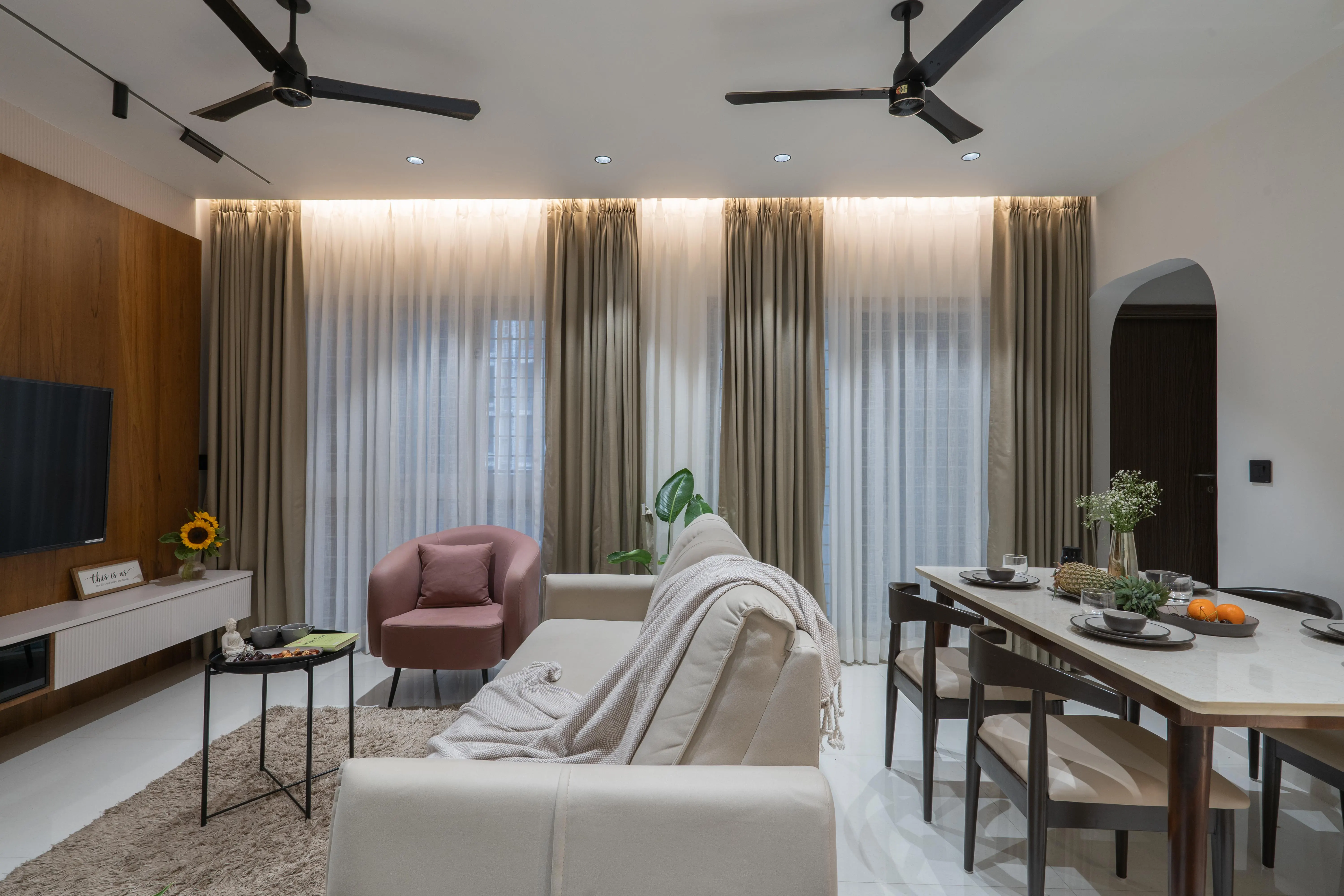 A 3BHK home designed to reflect a sense of warmth, balance, and understated luxury. Ivory Design Studio handled the complete design and execution, creating seamless spatial flow and refined detailing across every area. The interiors feature a soft, neutral palette complemented by natural textures and bespoke furniture, resulting in a space that feels both timeless and deeply personal.