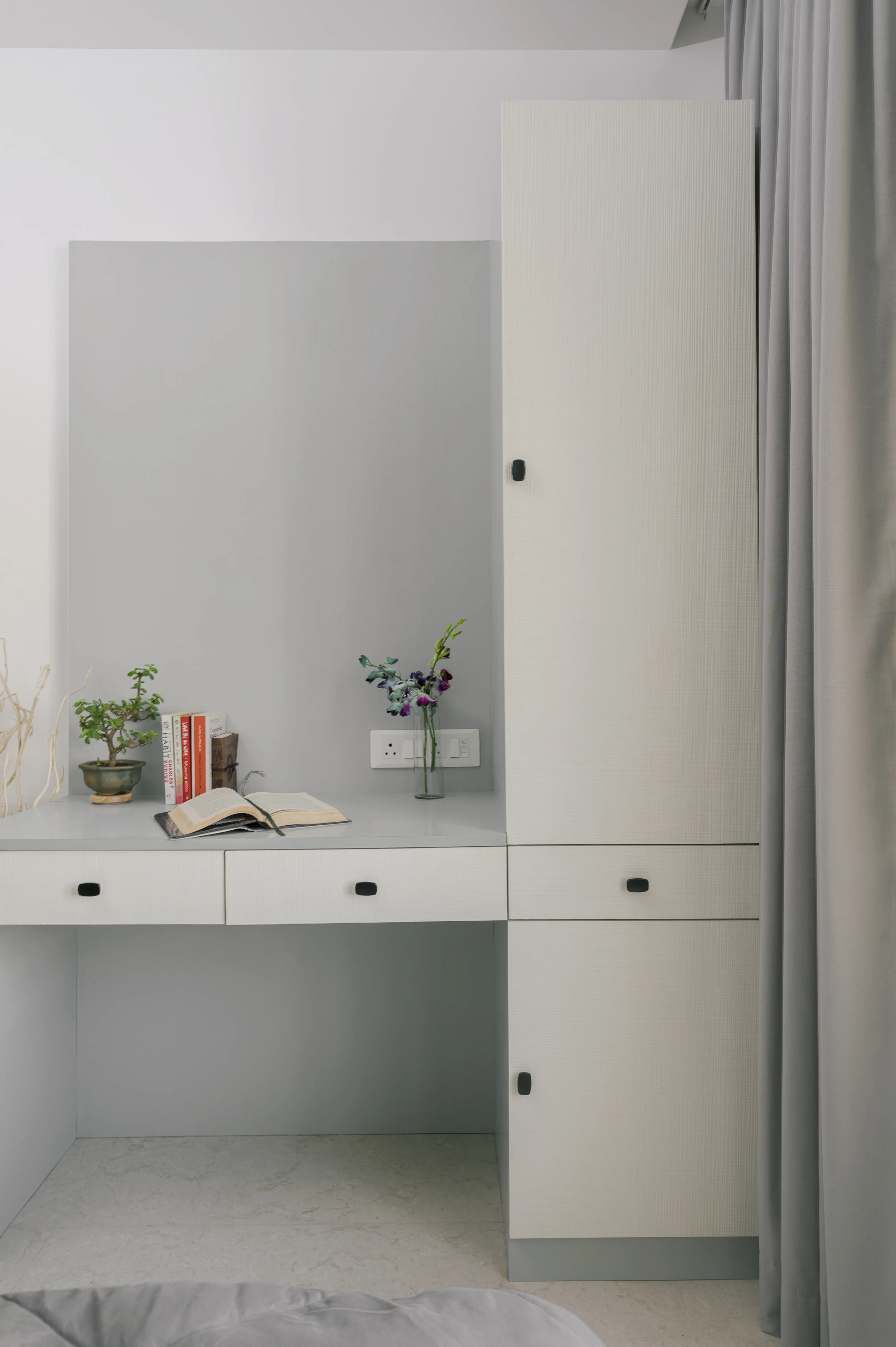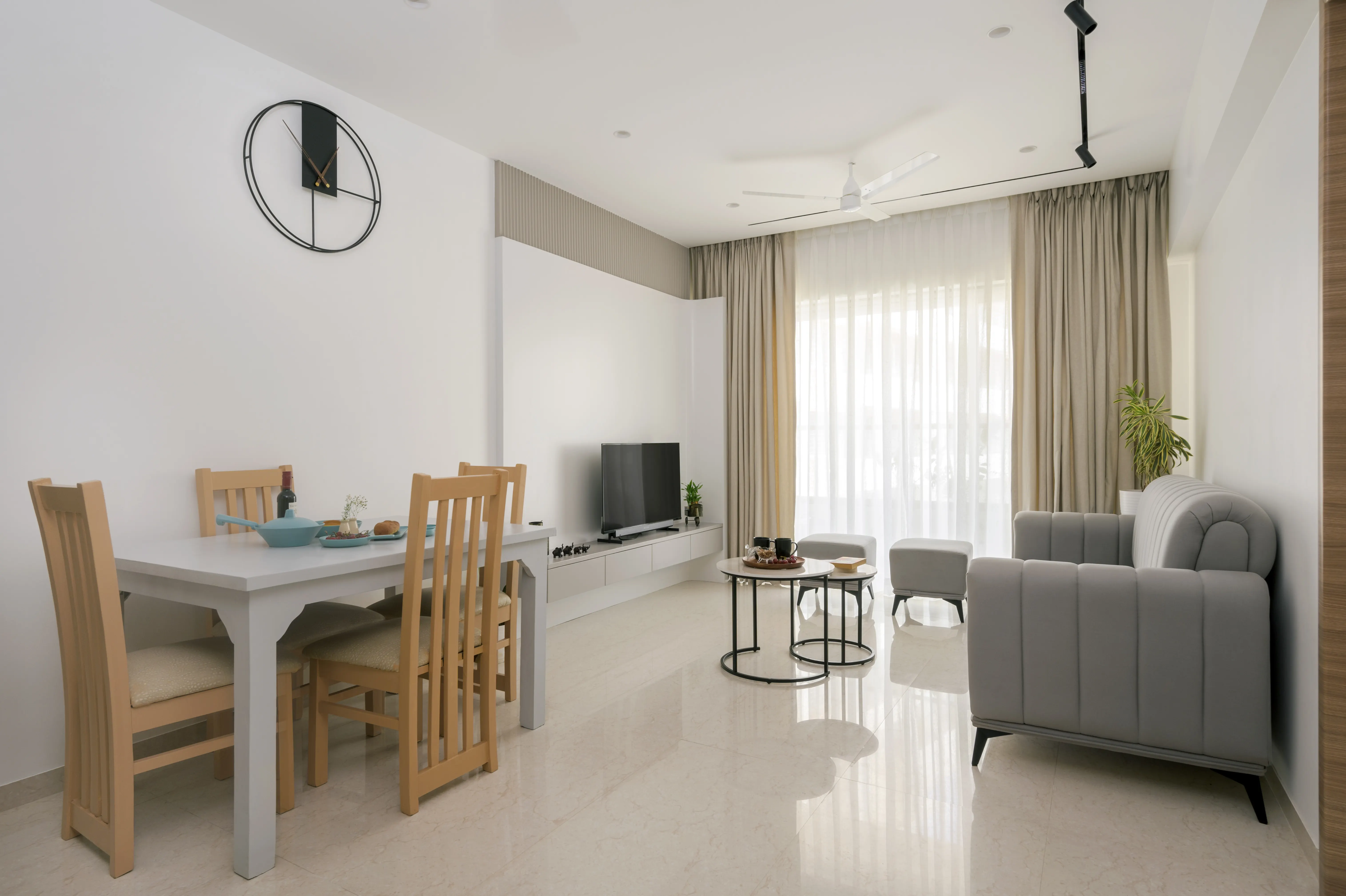 This 3BHK residence embodies a clean, contemporary aesthetic with thoughtful spatial planning and elegant detailing. Ivory Design Studio managed the entire design and execution, crafting a cohesive environment where comfort meets sophistication. Subtle textures, muted tones, and curated accents come together to create a home that feels modern, inviting, and effortlessly refined.