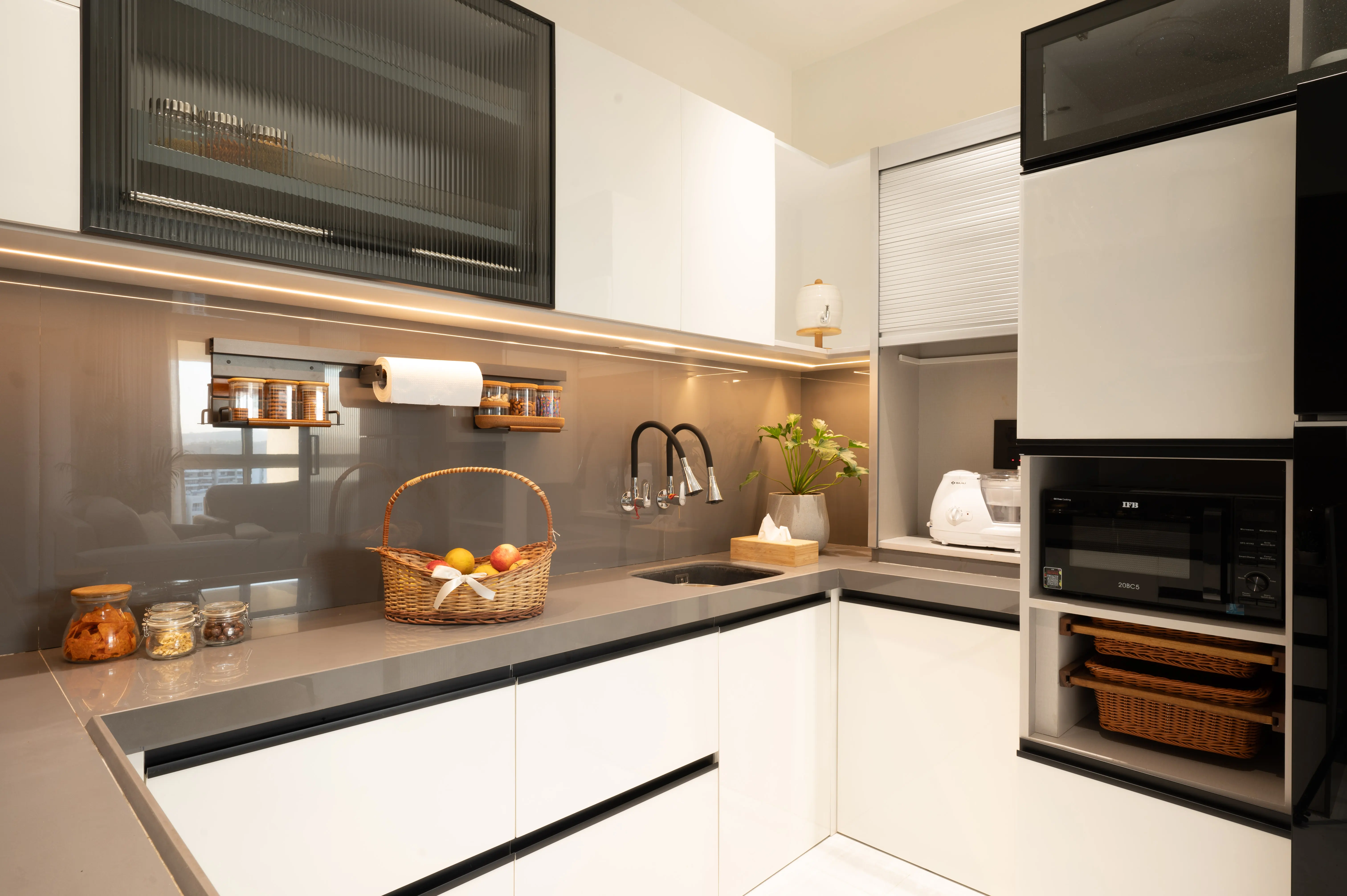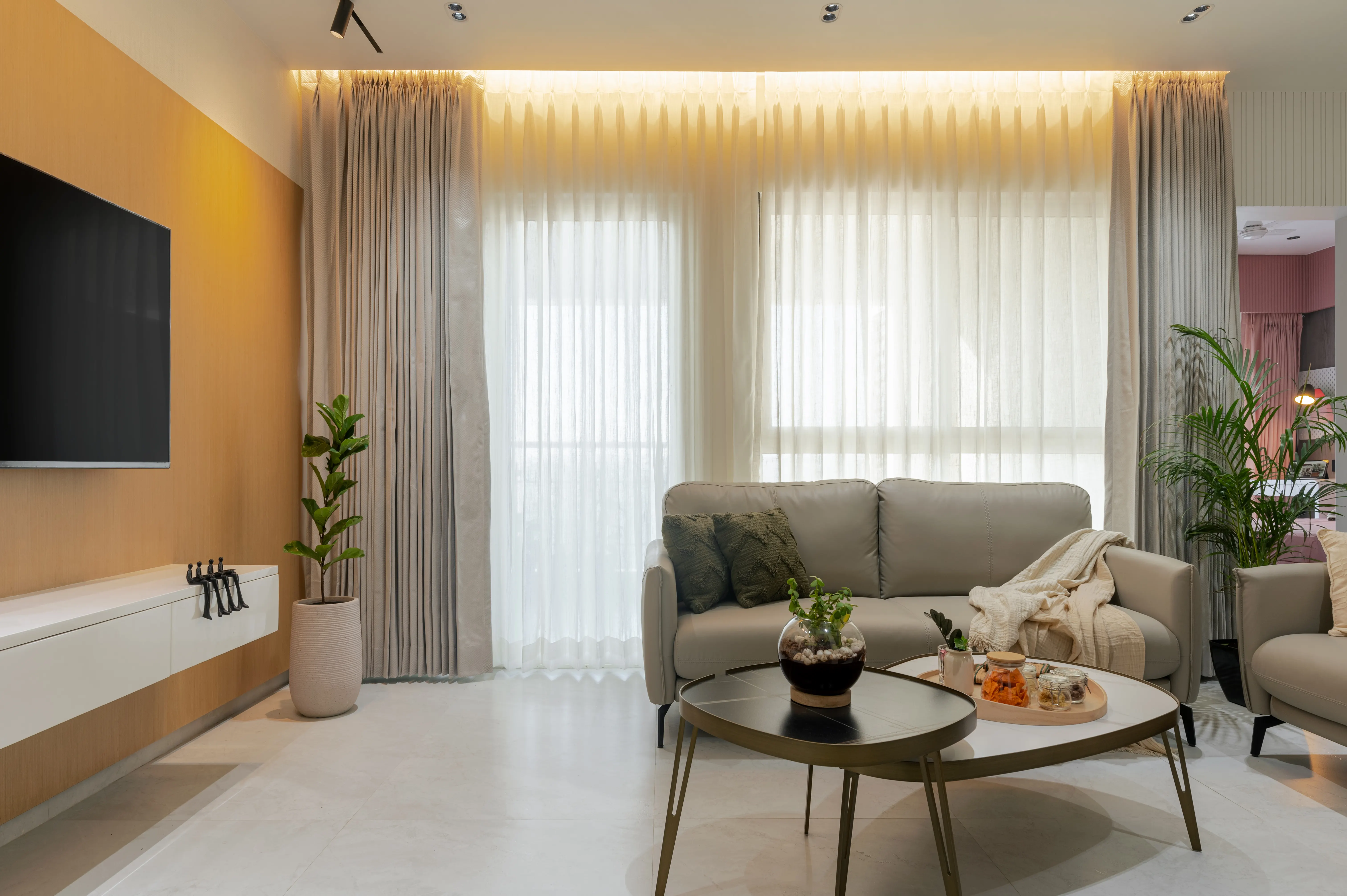 A 2BHK apartment designed and executed end-to-end by Ivory Design Studio, this home reflects a perfect balance of functionality and refined aesthetics. From space planning to bespoke furniture, wardrobes, and kitchen detailing, every element was thoughtfully crafted to create a cohesive and comfortable living environment. The design language combines modern elegance with warm finishes, resulting in a space that feels both inviting and timeless.